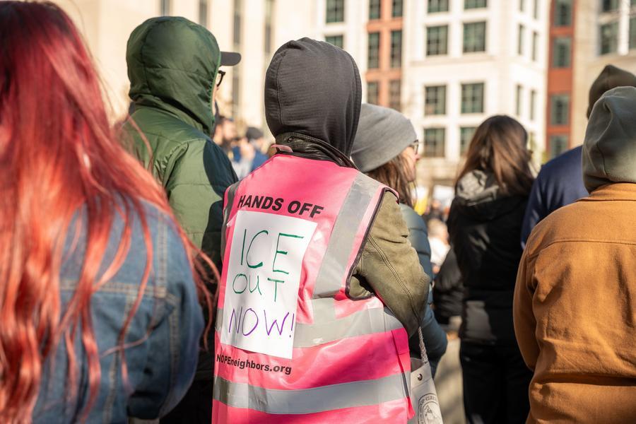 Imagen del 11 de enero de 2026 de personas asistiendo a la protesta "Fuera ICE para siempre" contra el Servicio de Inmigración y Control de Aduanas (ICE, por sus siglas en inglés), en Washington D.…