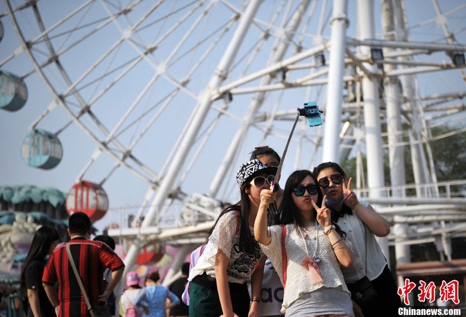 Muchos jóvenes estudiantes se toman fotos junto a la primera Estrella de la Fortuna de Pekín. (Foto: CNS / Zhang Yue)