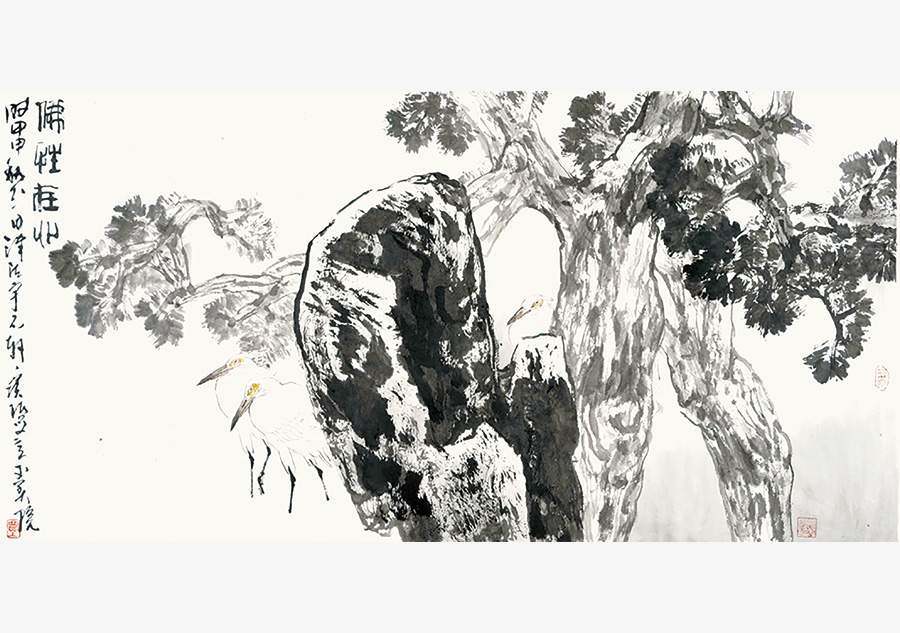 Obra de Jia Baomin realizada en tinta tradicional con temática de aves y flores. [Foto: Proporcionada]
