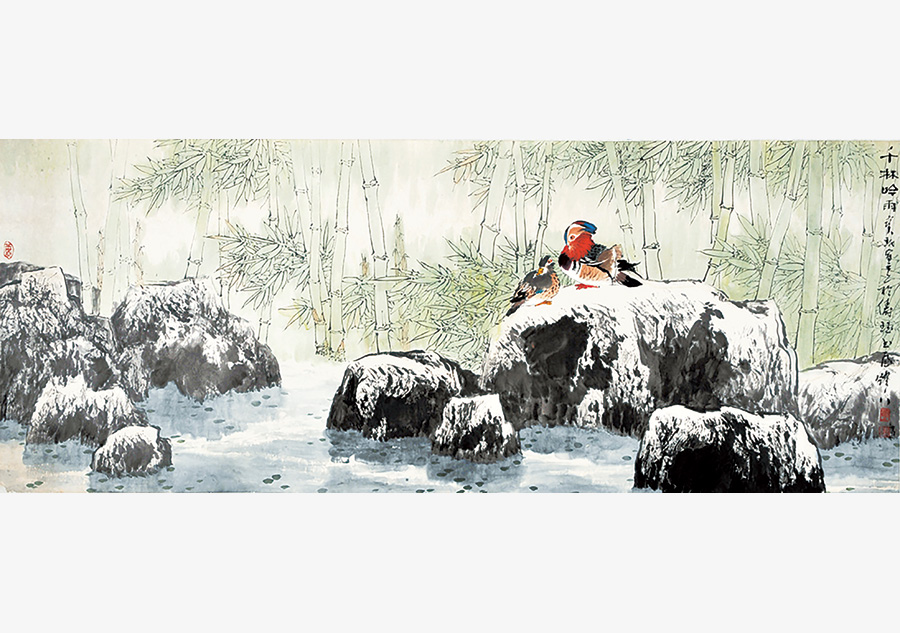 Obra de Jia Baomin realizada en tinta tradicional con temática de aves y flores. [Foto: Proporcionada]