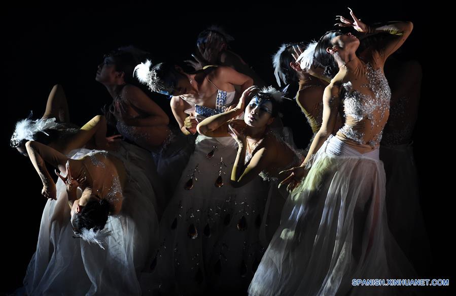 Actrices participan en el drama de danza "Pavo Real de Invierno", dirigido y protagonizado por la maestra de baile china Yang Liping, en Kunming, capital de la provincia de Yunnan, en el suroeste de China, el 16 de noviembre de 2016. (Xinhua/Lin Yiguang)