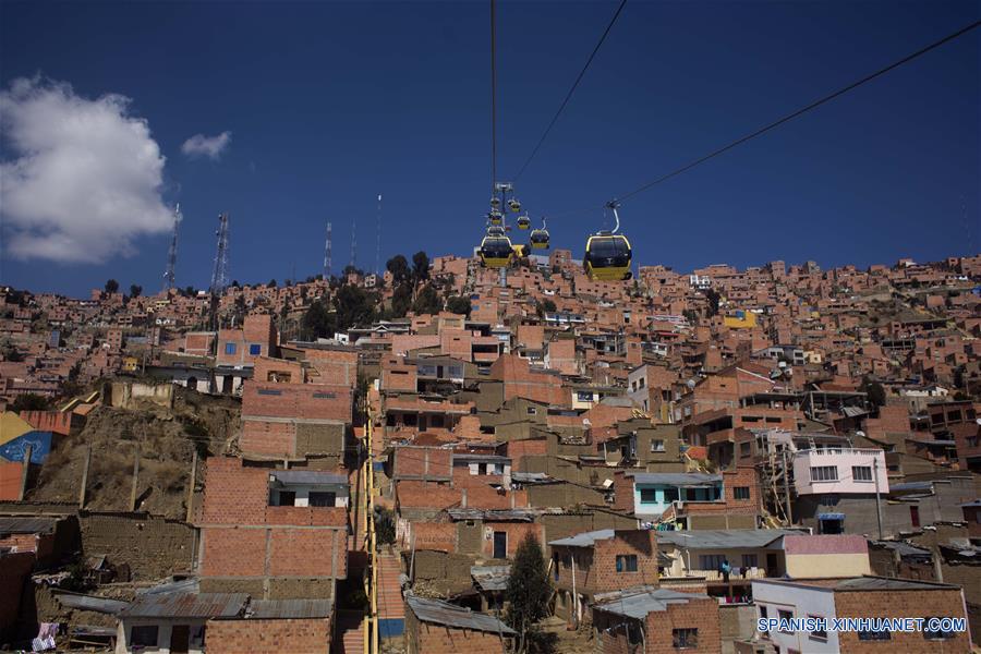 Imagen del 9 de octubre de 2014, de ciudadanos viajando en un teleférico, en La Paz, Bolivia. (Xinhua/David de la Paz)