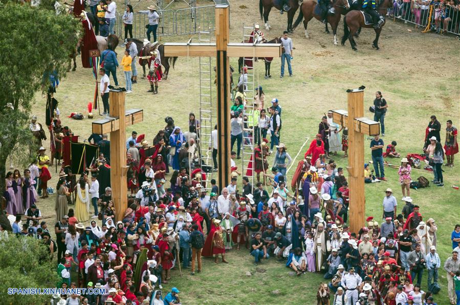 CIUDAD DE MEXICO, marzo 30, 2018 (Xinhua) -- Vista aérea de personas participando en la 175 representación de la Pasión de Cristo en Iztapalapa, en el marco de la celebración de la Semana Santa, en la Ciudad de México, capital de México, el 30 de marzo de 2018. (Xinhua/Francisco Cañedo)