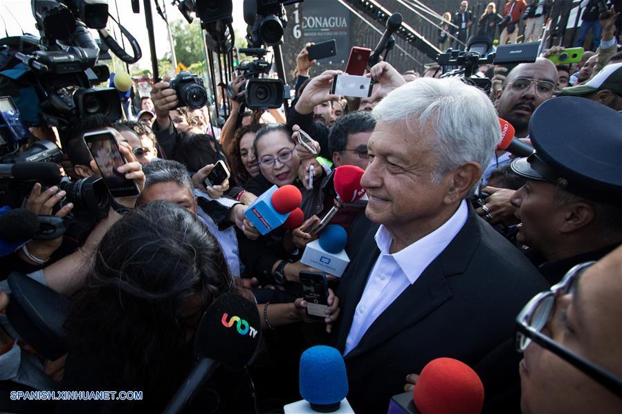 El candidato a la Presidencia de México por la coalición "Juntos Haremos Historia", Andrés Manuel López Obrador (c), conversa con representantes de los medios de comunicación previo a emitir su voto, en la Ciudad de México, capital de México, el 1 de julio de 2018. Las autoridades electorales mexicanas dieron el domingo el banderazo de salida para la celebración de los comicios más grandes de la historia de México, en los cuales poco más de 89 millones de ciudadanos están habilitados para elegir a un nuevo presidente y a más de 3,400 cargos. (Xinhua/Francisco Cañedo)
