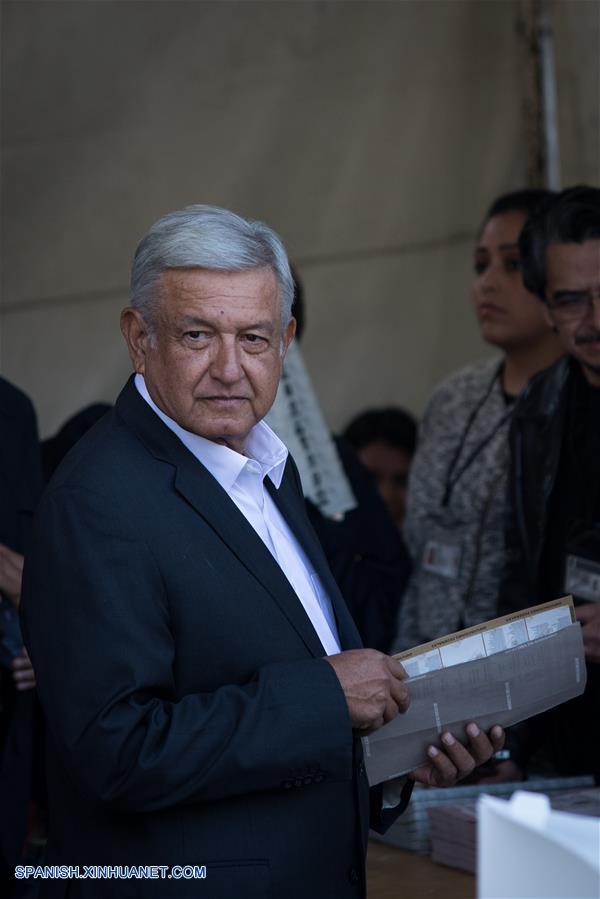 El candidato a la Presidencia de México por la coalición "Juntos Haremos Historia", Andrés Manuel López Obrador, reacciona previo a emitir su voto durante las elecciones generales en un centro de votación, en la Ciudad de México, capital de México, el 1 de julio de 2018. Las autoridades electorales mexicanas dieron el domingo el banderazo de salida para la celebración de los comicios más grandes de la historia de México, en los cuales poco más de 89 millones de ciudadanos están habilitados para elegir a un nuevo presidente y a más de 3,400 cargos. (Xinhua/Francisco Cañedo)