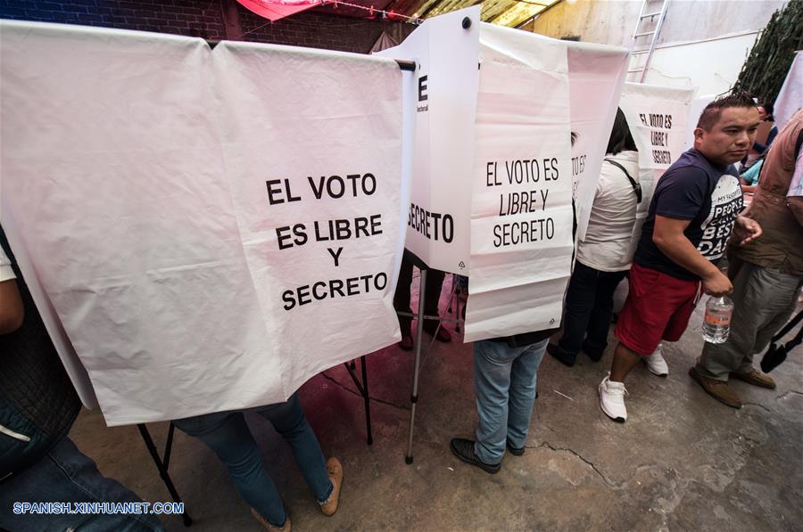 Personas emiten su voto en una urna electoral durante las elecciones generales, en un centro electoral, en la delegación Iztapalapa de la Ciudad de México, capital de México, el 1 de julio de 2018. Las autoridades electorales mexicanas dieron el domingo el banderazo de salida para la celebración de los comicios más grandes de la historia de México, en los cuales poco más de 89 millones de ciudadanos están habilitados para elegir a un nuevo presidente y a más de 3,400 cargos. (Xinhua/Alejandro Meléndez)
