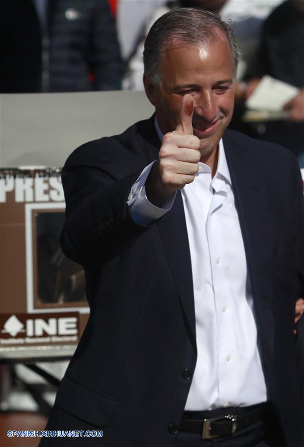 El candidato a la Presidencia de México por la coalición "Todos por México", José Antonio Meade muestra su dedo entintado durante las elecciones generales, en un centro de votación, en la Ciudad de México, capital de México, el 1 de julio de 2018. Las autoridades electorales mexicanas dieron el domingo el banderazo de salida para la celebración de los comicios más grandes de la historia de México, en los cuales poco más de 89 millones de ciudadanos están habilitados para elegir a un nuevo presidente y a más de 3.400 cargos. (Xinhua/Ricardo Aldayturriaga)
