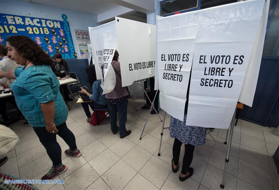 Personas emiten su voto durante las elecciones generales, en un centro electoral, en la Ciudad de México, capital de México, el 1 de julio de 2018. Las autoridades electorales mexicanas dieron el domingo el banderazo de salida para la celebración de los comicios más grandes de la historia de México, en los cuales poco más de 89 millones de ciudadanos están habilitados para elegir a un nuevo presidente y a más de 3,400 cargos. (Xinhua/Alejandro Meléndez)