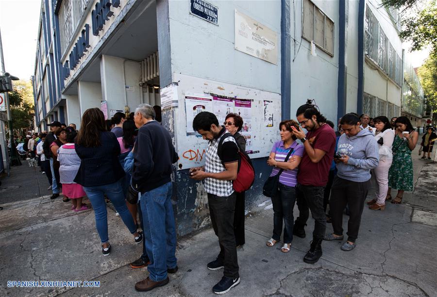 Personas permanecen en fila para emitir su voto durante las elecciones generales, en un centro electoral, en la Ciudad de México, capital de México, el 1 de julio de 2018. Las autoridades electorales mexicanas dieron el domingo el banderazo de salida para la celebración de los comicios más grandes de la historia de México, en los cuales poco más de 89 millones de ciudadanos están habilitados para elegir a un nuevo presidente y a más de 3,400 cargos. (Xinhua/Alejandro Meléndez)