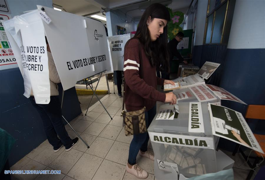 Una persona deposita su voto en una urna electoral durante las elecciones generales, en un centro electoral, en la Ciudad de México, capital de México, el 1 de julio de 2018. Las autoridades electorales mexicanas dieron el domingo el banderazo de salida para la celebración de los comicios más grandes de la historia de México, en los cuales poco más de 89 millones de ciudadanos están habilitados para elegir a un nuevo presidente y a más de 3,400 cargos. (Xinhua/Alejandro Meléndez)