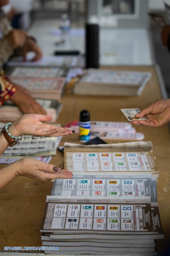 Una persona se registra para emitir su voto durante las elecciones generales, en un centro electoral, en la Ciudad de México, capital de México, el 1 de julio de 2018. Las autoridades electorales mexicanas dieron el domingo el banderazo de salida para la celebración de los comicios más grandes de la historia de México, en los cuales poco más de 89 millones de ciudadanos están habilitados para elegir a un nuevo presidente y a más de 3,400 cargos. (Xinhua/Francisco Cañedo)