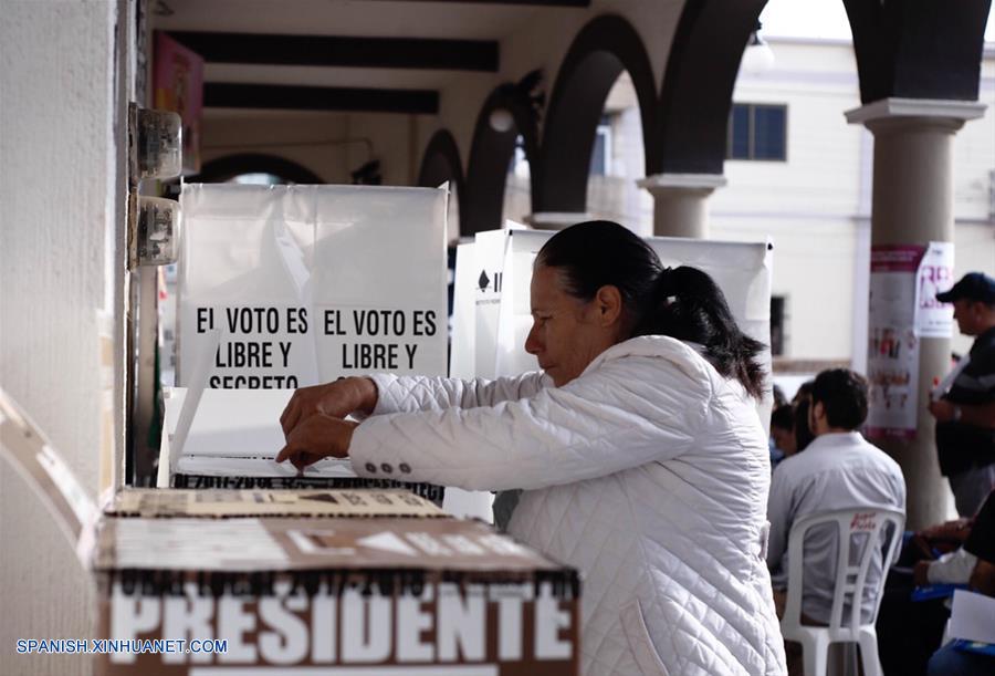 Una mujer deposita su voto en una urna electoral durante las elecciones generales, en un centro electoral en la ciudad de Guadalajara, estado de Jalisco, México, el 1 de julio de 2018. Las autoridades electorales mexicanas dieron el domingo el banderazo de salida para la celebración de los comicios más grandes de la historia de México, en los cuales poco más de 89 millones de ciudadanos están habilitados para elegir a un nuevo presidente y a más de 3,400 cargos. (Xinhua/Bernardette Gómez)
