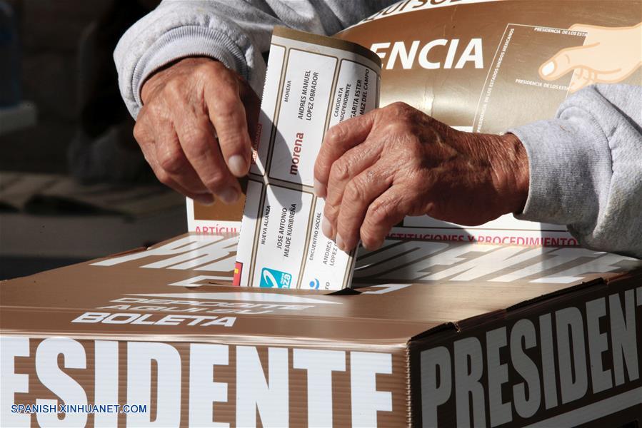 Una persona deposita su voto en una urna electoral durante las elecciones generales, en un centro electoral en la ciudad de Querétaro, estado de Querétaro, México, el 1 de julio de 2018. Las autoridades electorales mexicanas dieron el domingo el banderazo de salida para la celebración de los comicios más grandes de la historia de México, en los cuales poco más de 89 millones de ciudadanos están habilitados para elegir a un nuevo presidente y a más de 3,400 cargos. (Xinhua/Str)