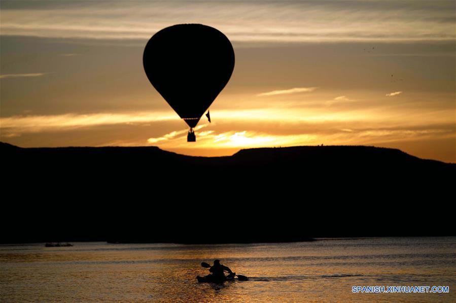 Un globo aerostático vuela durante la XVII edición del Festival Internacional del Globo (FIG), en la ciudad de León, estado de Guanajuato, México, el 17 de noviembre de 2018. El FIG se inauguró el viernes en el Parque Metropolitano con la participación de 200 globos de 23 países. El festival, que se lleva a cabo del 16 al 19 de noviembre, fue reconocido este año por la Secretaría de México con el premio de Diversificación del Producto Turístico 2018 y Desarrollo de Turismo en Espacios Públicos. (Xinhua/David de la Paz)