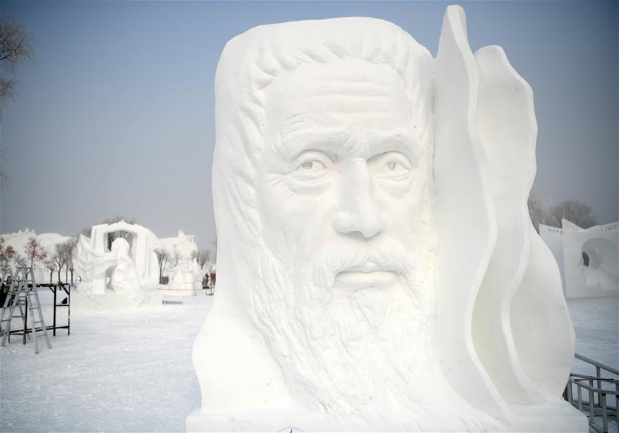 HARBIN, enero 13, 2019 (Xinhua) -- Vista de una escultura de hielo durante la 24 Competencia Internacional de Esculturas de Nieve de Harbin en el Parque Internacional de Exposiciones de Arte de Escultura de Nieve Isla del Sol, en Harbin, capital de la provincia de Heilongjiang, en el noreste de China, el 31 de enero de 2019. La competencia terminó el domingo. (Xinhua/Wang Jianwei) (da) (190113) -- HARBIN, Jan. 13, 2019 (Xinhua) -- Photo taken on Jan. 13, 2019 shows a snow sculpture during the 24th Harbin International Snow Sculpture Competition at Sun Island International Snow Sculpture Art Expo park in Harbin, capital of northeast China's Heilongjiang Province. The competition ended on Sunday. (Xinhua/Wang Jianwei)