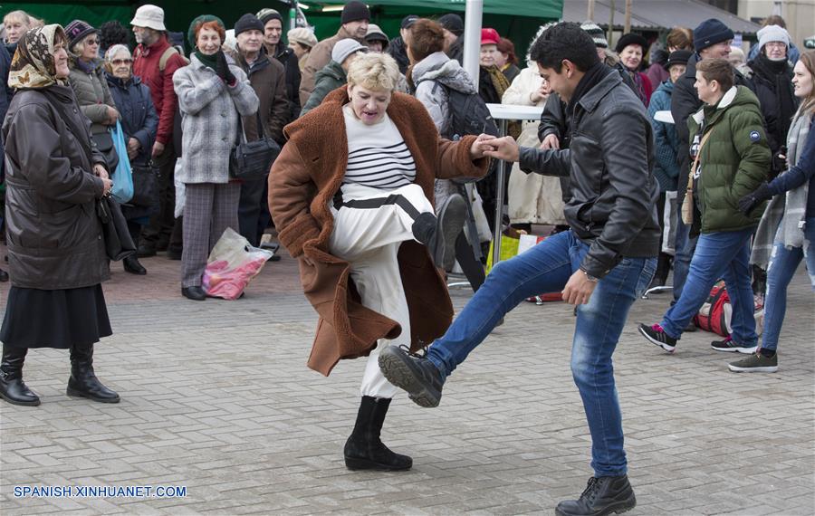 RIGA, 8 marzo, 2019 (Xinhua) -- Personas bailan durante un concierto llevado a cabo en ocasión del Día Internacional de la Mujer en el Mercado Central de Riga, en Riga, Letonia, el 8 de marzo de 2019. (Xinhua/Edijs Palens)