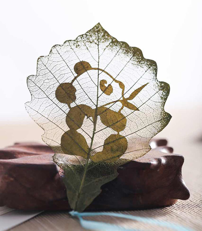 Esta técnica es compleja y requiere mucho tiempo. Por lo general, hay que invertir alrededor de 10 días para convertir las hojas naturales en obras de arte. Para lograrlo, hay que transitar por una serie de procesos como la selección, limpieza, remojo, dibujo, tallado y secado.