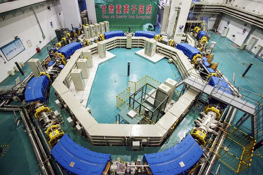 El acelerador para el primer sistema chino de tratamiento contra el cáncer basado en iones de carbono se instaló en el Hospital Oncológico Wuwei, provincia de Gansu. Los iones de carbono se aceleran alrededor del 70 por ciento de la velocidad de la luz, luego se lanzan contra el tumor para destruir el ADN de sus células y eliminarlas. [Foto: China Daily]