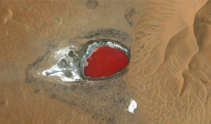 Una de las áreas fotografiadas corresponde al desierto Jaran de Badain en la liga Alshaa, en la región autónoma de Mongolia Interior, uno de los ocho grandes desiertos de China. Cubre un área de 49.000 kilómetros cuadrados y es árida, con una precipitación anual de menos de 40 mm. Está atravesado por fallas que muestran el agua subterránea en la superficie formando lagos en áreas bajas.
