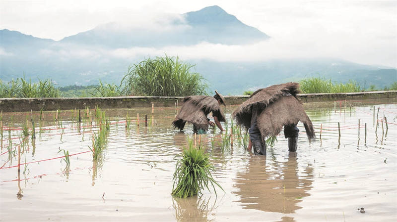 Agricultores del condado de Qingtian, provincia de Zhejiang, plantan arroz. [Foto: proporcionada a China Daily]