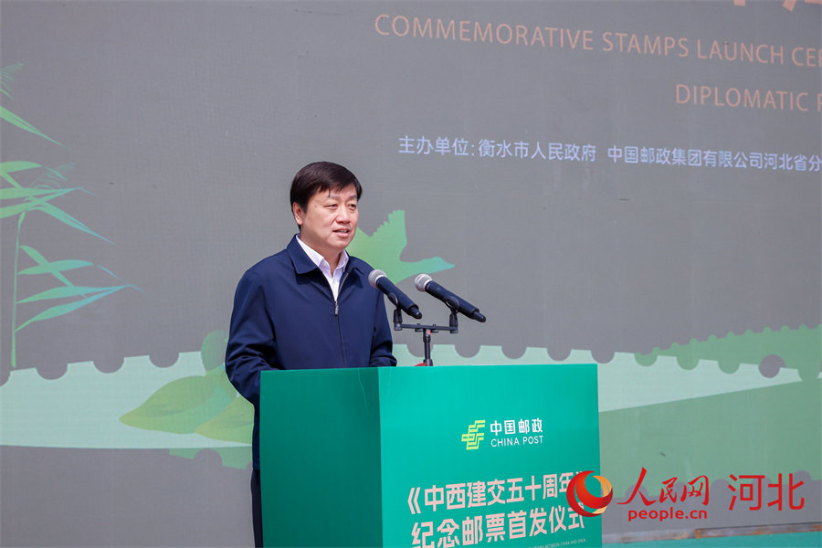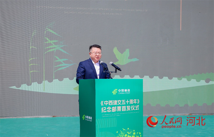 Zhang Zongliang, director de la sucursal de Hebei de China Post, da un discurso en la ceremonia. (Foto: Zhou Bo/Diario del Pueblo digital)