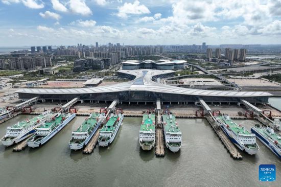 BEIJING, 7 octubre, 2025 (Xinhua) -- Vista aérea tomada con un dron el 7 de octubre de 2025 de vehículos subiendo a buques ro-ro en un puerto, en Haikou, en la provincia de Hainan, en el sur de China. A medida que las vacaciones del Día Nacional y el Festival de Medio Otoño llegan a su fin, los flujos de viajes de regreso aumentan en todo el país. (Xinhua/Zhang Liyun)
