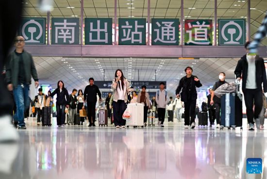 BEIJING, 7 octubre, 2025 (Xinhua) -- Pasajeros son vistos en la Estación del Ferrocarril de Harbin, en Harbin, en la provincia de Heilongjiang, en el noreste de China, el 7 de octubre de 2025. A medida que las vacaciones del Día Nacional y el Festival de Medio Otoño llegan a su fin, los flujos de viajes de regreso aumentan en todo el país. (Xinhua/Zhang Tao)