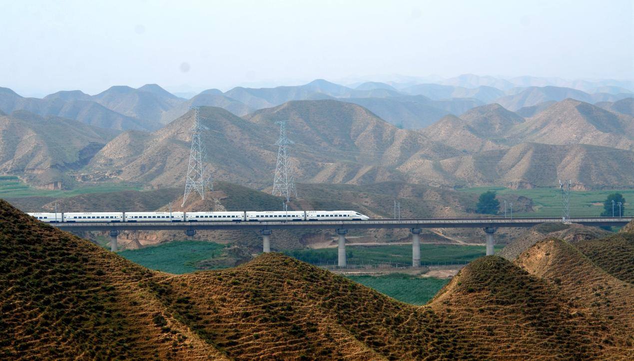 | Un tren bala atraviesa el vasto paisaje del Gobi en el municipio de Zhongchuan, Nueva Área de Lanzhou, provincia de Gansu, noroeste de China, el 3 de agosto de 2025. (Foto/Xu Gang) |