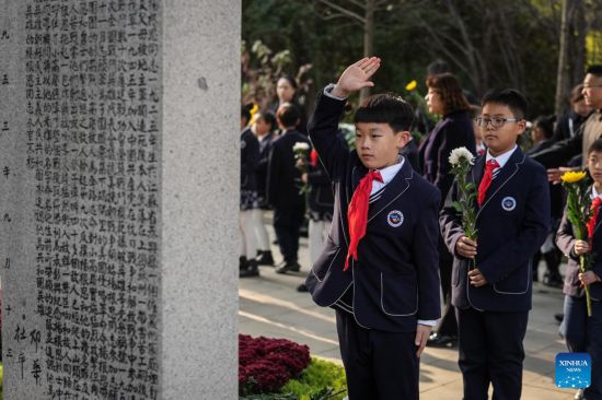 SHENYANG, 25 octubre, 2025 (Xinhua) -- Estudiantes rinden homenaje a los mártires de los Voluntarios del Pueblo Chino (VPCh) en el cementerio de los mártires de los VPCh, en Shenyang, en la provincia de Liaoning, en el noreste de China, el 25 de octubre de 2025. La provincia de Liaoning realizó el sábado ceremonias de presentación de cestas de flores en Shenyang y Dandong para conmemorar el 75º aniversario del ingreso a la República Popular Democrática de Corea de los VPCh para luchar en la Guerra de Resistencia contra la Agresión de Estados Unidos y de Ayuda a Corea. (Xinhua/Pan Yulong)
