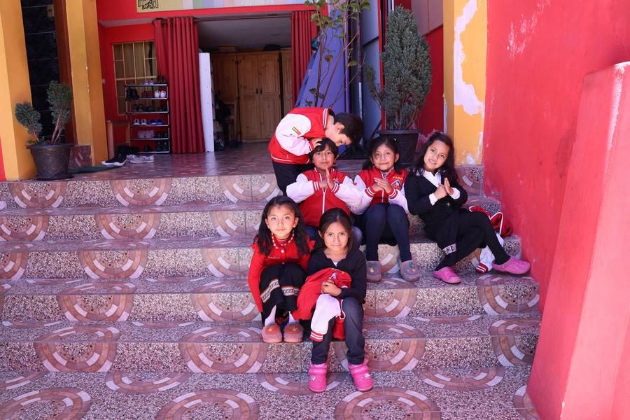 | Imagen del 20 de octubre de 2025 de niños posando para una fotografía en el colegio Comunidad Educativa Chino Boliviana Sariri, en la ciudad de La Paz, Bolivia. (Xinhua/Li Xin) |
