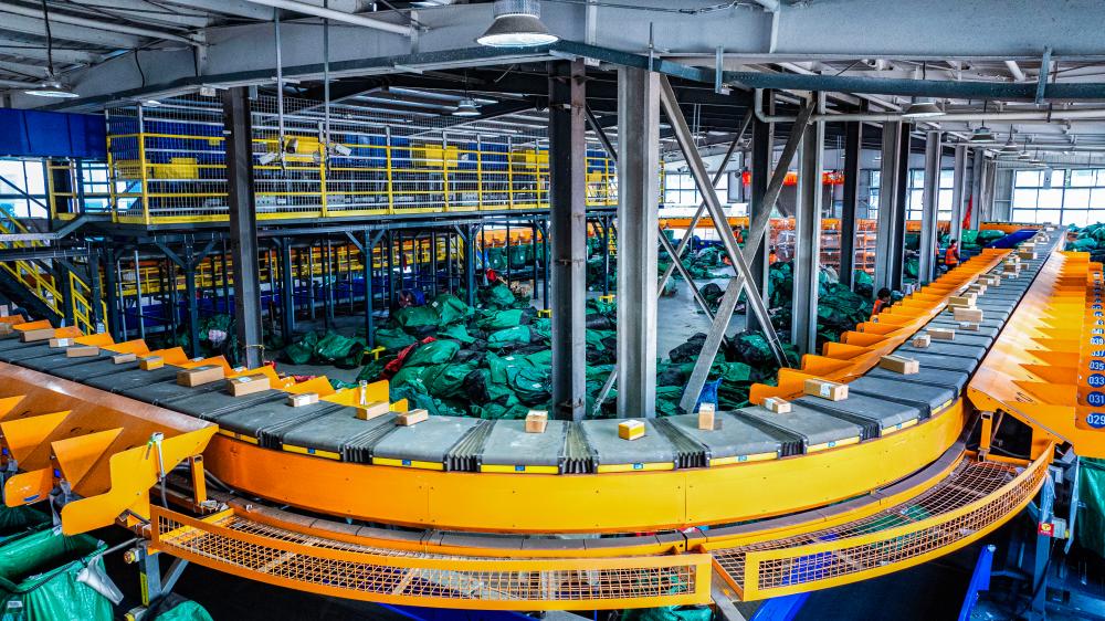 BEIJING, 10 noviembre, 2025 (Xinhua) -- Empleados trabajan en una línea automatizada de clasificación de paquetes de una compañía exprés, en el distrito de Changxing de Huzhou, en la provincia de Zhejiang, en el este de China, el 10 de noviembre de 2025. Las compañías de comercio electrónico y logística a lo largo de China se encuentran ocupadas vendiendo, empaquetando y entregando mercancía en vísperas del festival anual de compras "Doble Once", que cae el 11 de noviembre. (Xinhua/Tan Yunfeng)