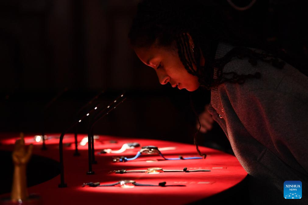 Imagen del 13 de noviembre de 2025 de una mujer observando un reloj en la exposición del 25 Gran Premio de Relojería de Ginebra (GPHG, por sus siglas en francés), en Ginebra, Suiza. La marca china independiente de relojes Fam al Hut ganó el jueves el Premio Audacity en el 25 GPHG, considerado por muchos como los "Oscar de la Relojería". Esta es la segunda vez que una marca china ha obtenido un premio GPHG. En 2021, la empresa china CIGA Design ganó el Premio Challenge Watch por su modelo original, "el Planeta Azul". (Xinhua/Lian Yi)