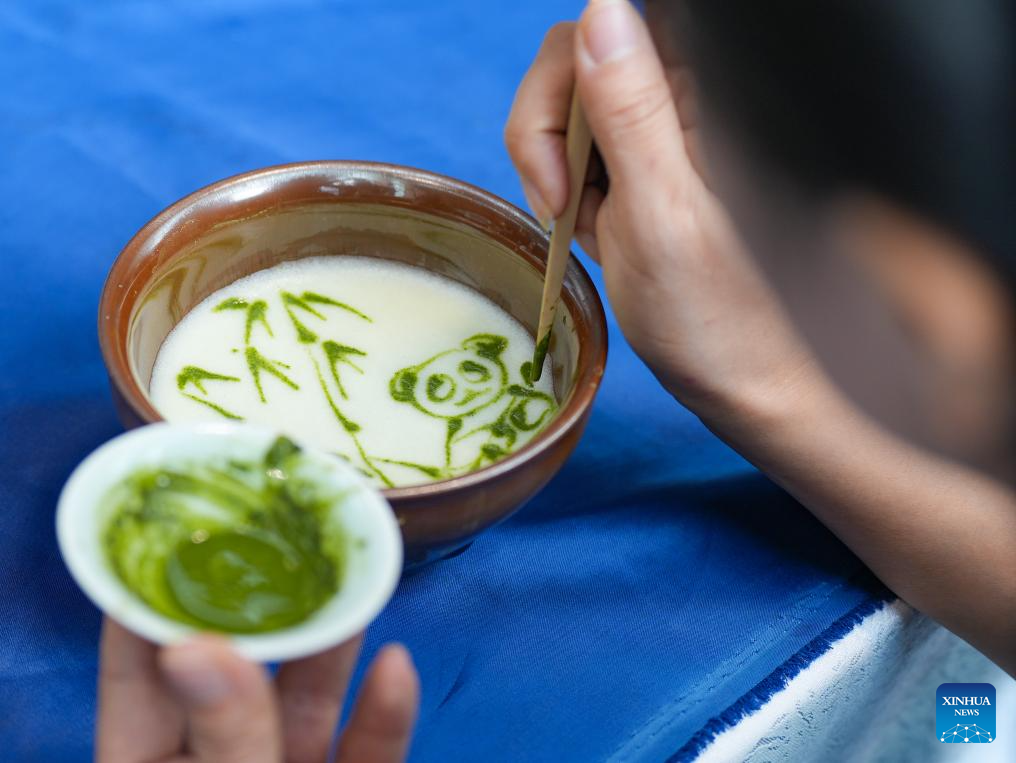 CHENGDU, 21 noviembre, 2025 (Xinhua) -- Un técnico de té dibuja un patrón de panda mientras prepara té en una exposición de productos culturales y creativos con temática de pandas, en Chengdu, en la provincia de Sichuan, en el suroeste de China, el 21 de noviembre de 2025. La Conferencia Global de Socios del Panda 2025 fue inaugurada aquí el viernes. (Xinhua/Wang Xi)