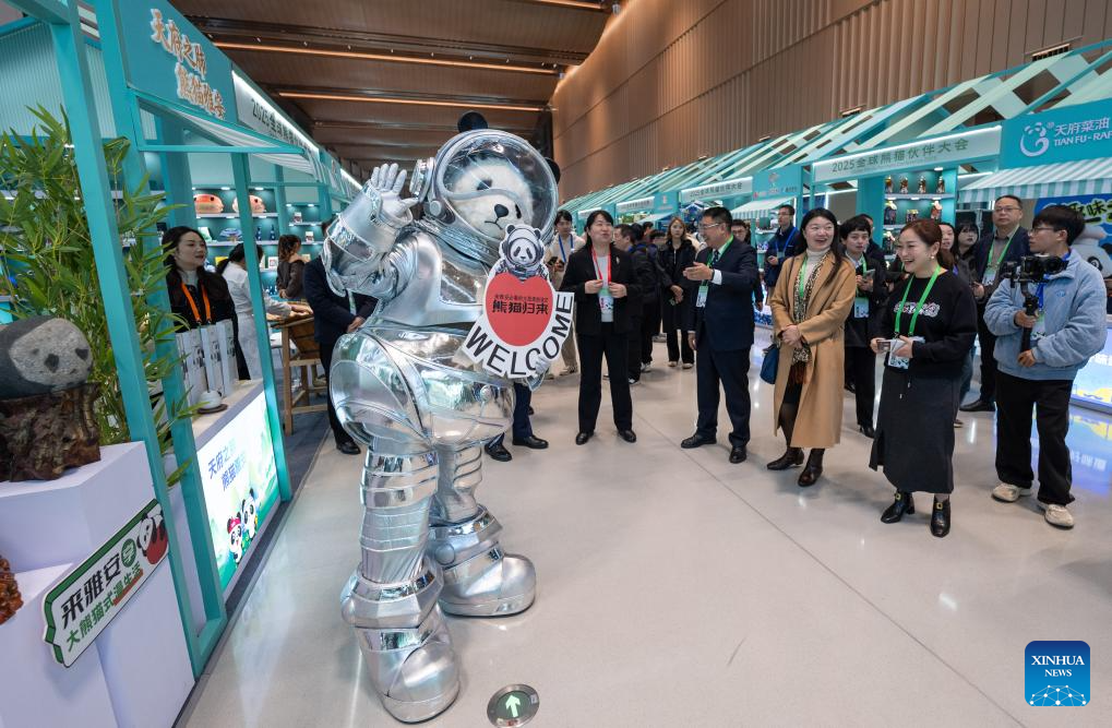 CHENGDU, 21 noviembre, 2025 (Xinhua) -- Invitados visitan el área de exposición de la ciudad de Ya'an de la Conferencia Global de Socios del Panda 2025, en Chengdu, en la provincia de Sichuan, en el suroeste de China, el 21 de noviembre de 2025. La Conferencia Global de Socios del Panda 2025 fue inaugurada aquí el viernes. (Xinhua/Jiang Hongjing)