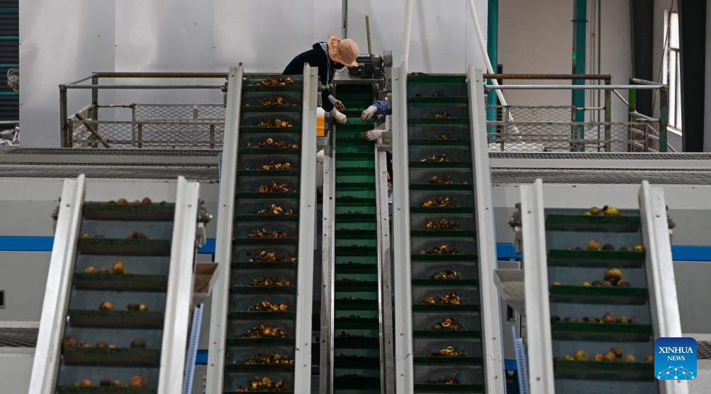 BAISHA, 26 noviembre, 2025 (Xinhua) -- Imagen del 19 de noviembre de 2025 de trabajadores procesando frutos de aceite de té de camelia en un taller de una empresa de biotecnología, en el poblado de Bangxi del distrito autónomo li de Baisha, en la provincia de Hainan, en el sur de China. En los últimos años, el distrito autónomo li de Baisha ha estado aprovechado al máximo el potencial del caucho, el té y el aceite de té de camelia, tres de sus cultivos industriales más representativos, para impulsar la economía local. (Xinhua/Yang Guanyu)