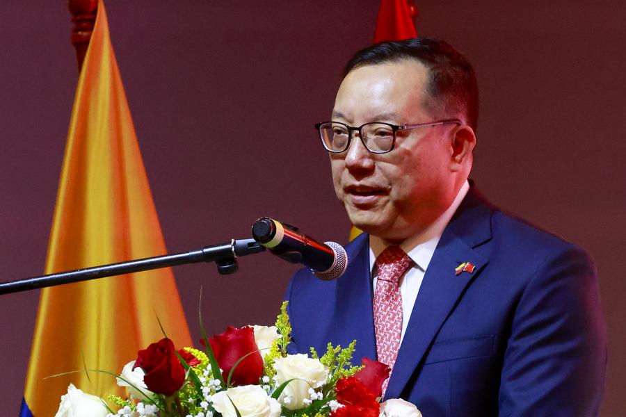 | Imagen del 26 de noviembre de 2025 del embajador de China en Ecuador, Sun Xiangyang, pronunciando un discurso durante el evento anual de "Cooperación en el Desarrollo de Recursos Humanos China-Ecuador 2025", en Quito, capital de Ecuador. (Xinhua/Ricardo Landeta) |