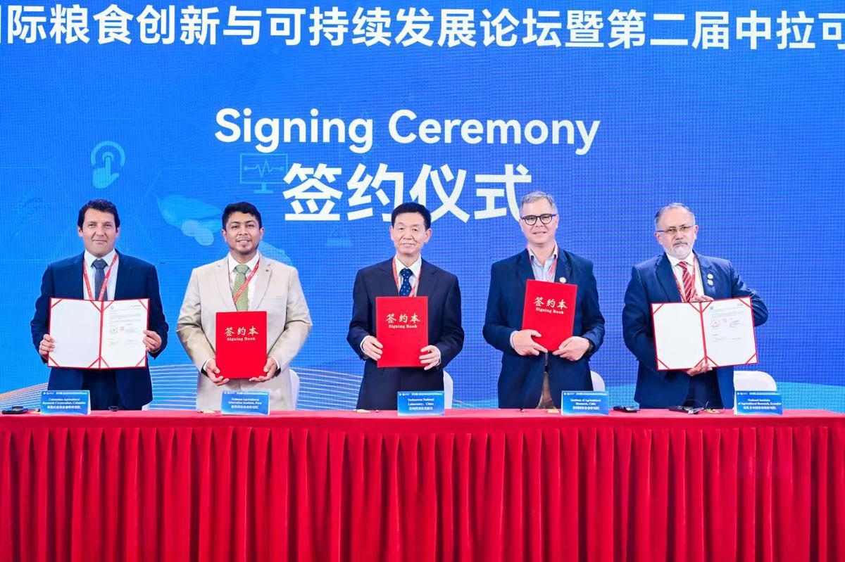 En la ceremonia de apertura del foro, el Laboratorio Nacional de Yazhouwan firmó memorandos de entendimiento de cooperación con instituciones de investigación agrícola de Colombia, Perú, Ecuador y Chile.