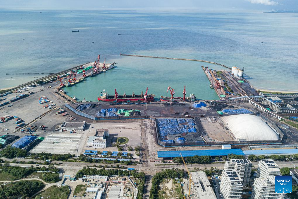 Vista aérea tomada con un dron el 21 de noviembre de 2025 del Area Portuaria Aduanera de Yangpu en la Zona de Desarrollo Económico de Yangpu, en la provincia de Hainan, en el sur de China. El Puerto de Libre Comercio (FTP, por sus siglas en inglés) de Hainan de China se prepara para operaciones aduaneras especiales en toda la isla, un hito importante en el impulso de apertura de la segunda economía más grande del mundo, a pesar del creciente proteccionismo internacional. Como "campo experimental" del FTP de Hainan, los 13 parques industriales clave dentro del puerto se han convertido en importantes impulsores del crecimiento económico de Hainan. (Xinhua/Pu Xiaoxu)