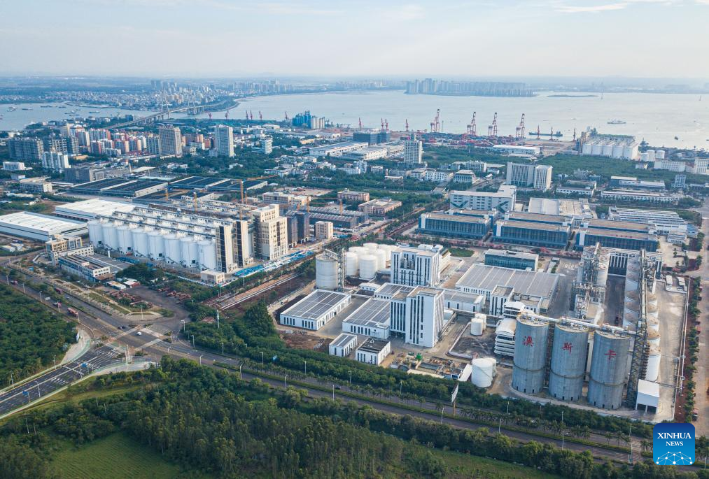 Vista aérea tomada con un dron el 7 de noviembre de 2025 del Parque Industrial Lingang de Dongfang, en la provincia de Hainan, en el sur de China. El Puerto de Libre Comercio (FTP, por sus siglas en inglés) de Hainan de China se prepara para operaciones aduaneras especiales en toda la isla, un hito importante en el impulso de apertura de la segunda economía más grande del mundo, a pesar del creciente proteccionismo internacional. Como "campo experimental" del FTP de Hainan, los 13 parques industriales clave dentro del puerto se han convertido en importantes impulsores del crecimiento económico de Hainan. (Xinhua/Pu Xiaoxu)