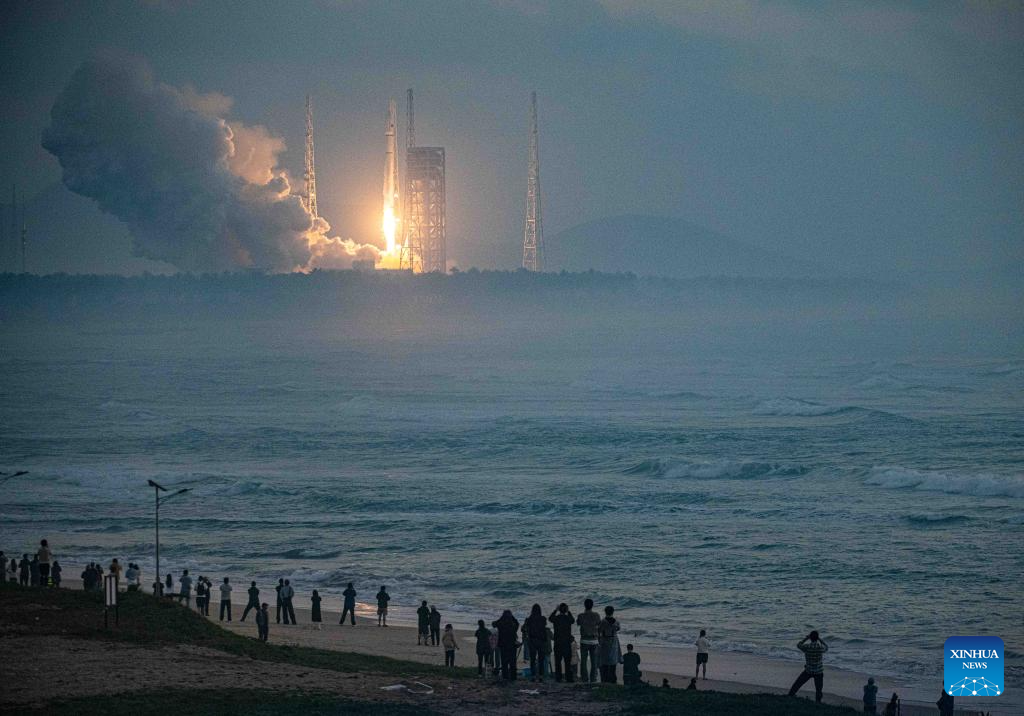 Personas observan el despegue de un cohete desde el sitio de lanzamiento de naves espaciales comerciales de Hainan en la Ciudad Aeroespacial Internacional de Wenchang, en la provincia de Hainan, en el sur de China, el 12 de diciembre de 2025. El Puerto de Libre Comercio (FTP, por sus siglas en inglés) de Hainan de China se prepara para operaciones aduaneras especiales en toda la isla, un hito importante en el impulso de apertura de la segunda economía más grande del mundo, a pesar del creciente proteccionismo internacional. Como "campo experimental" del FTP de Hainan, los 13 parques industriales clave dentro del puerto se han convertido en importantes impulsores del crecimiento económico de Hainan. (Xinhua/Pu Xiaoxu)