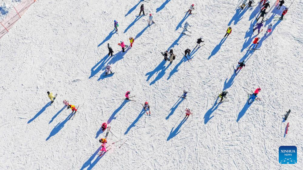 BEIJING, 16 diciembre, 2025 (Xinhua) -- Vista aérea tomada con un dron el 7 de diciembre de 2025 de turistas esquiando en la estación de esquí Yulongwan, en el distrito de Yutian, en la ciudad de Tangshan de la provincia de Hebei, en el norte de China. (Xinhua/Liu Mancang)