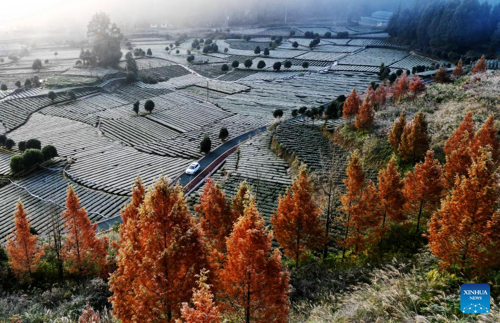 BEIJING, 16 diciembre, 2025 (Xinhua) -- Imagen del 25 de noviembre de 2025 de un jardín de té cubierto por escarcha, en la aldea de Dashaba, en el distrito de Xianfeng, en Enshi de la provincia de Hubei, en el centro de China. (Xinhua/Li Weijun)
