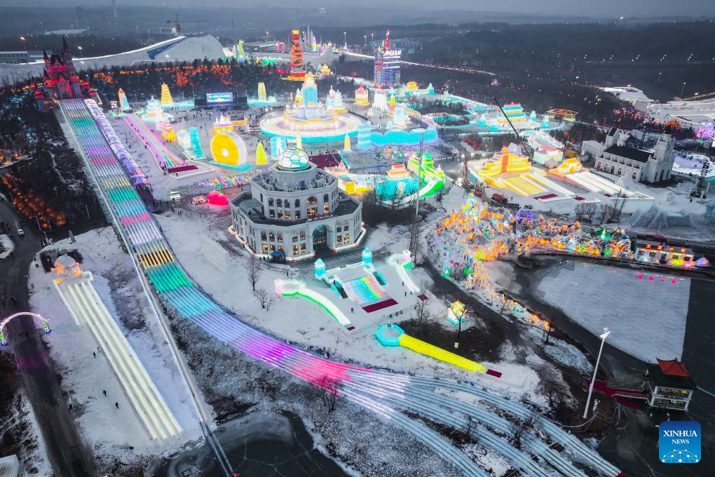 CHANGCHUN, 19 diciembre, 2025 (Xinhua) -- Vista aérea tomada con un dron el 19 de diciembre de 2025 del Nuevo Mundo de Hielo y Nieve de Changchun, en Changchun, en la provincia de Jilin, en el noreste de China. El 29° Festival de Hielo y Nieve de Changchun comenzó aquí el viernes. (Xinhua/Zhang Yang)