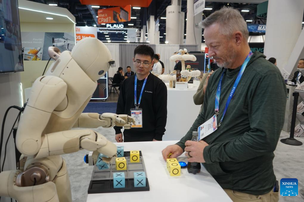 Imagen del 8 de enero de 2026 de un robot de la empresa china Fourier exhibido durante la Feria de Electrónica de Consumo (CES, por sus siglas en inglés) 2026, en Las Vegas, Estados Unidos. (Xinhua/Zeng Hui)