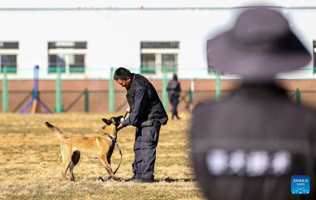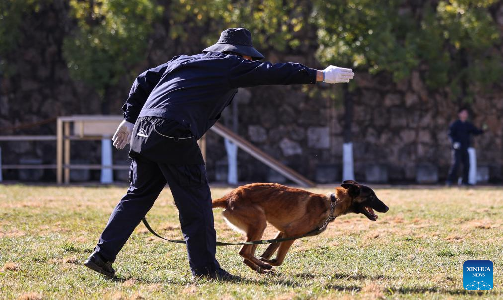 Imagen del 29 de diciembre de 2025 de un adiestrador de perros policía entrenando a un perro de Kunming en la detección de explosivos en la base de perros policía de Kunming del Ministerio de Seguridad Pública, en Kunming, en la provincia de Yunnan, en el suroeste de China. El perro de Kunming es una raza única desarrollada por la base de perros policía de Kunming del Ministerio de Seguridad Pública a lo largo de más de seis décadas de trabajo. Se crió utilizando recursos caninos locales gracias al esfuerzo de varias generaciones de profesionales de perros policía. (Xinhua/Gao Yongwei)