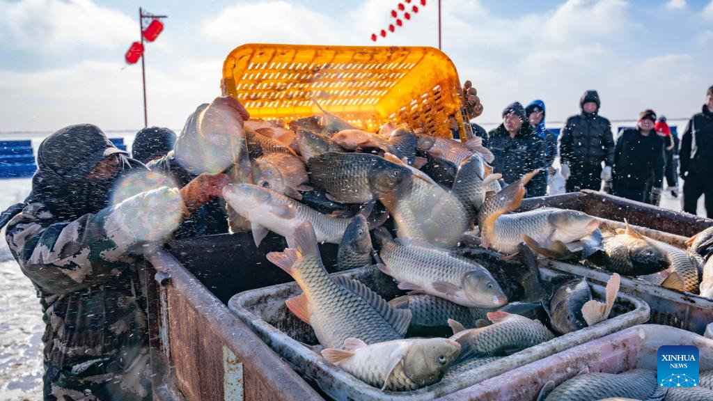 HOHHOT, 12 enero, 2026 (Xinhua) -- Imagen del 10 de enero de 2026 de pescadores cargando el pescado fresco en un camión durante el cuarto festival de pesca invernal de Hasuha, en Hohhot, en la región autónoma de Mongolia Interior, en el norte de China. Hohhot ha puesto en marcha más de 300 programas de diversión de invierno desde diciembre de 2025, incluyendo deportes de hielo y nieve, experiencias culturales y consumo de moda para impulsar la economía local. (Xinhua/Xu Ting)