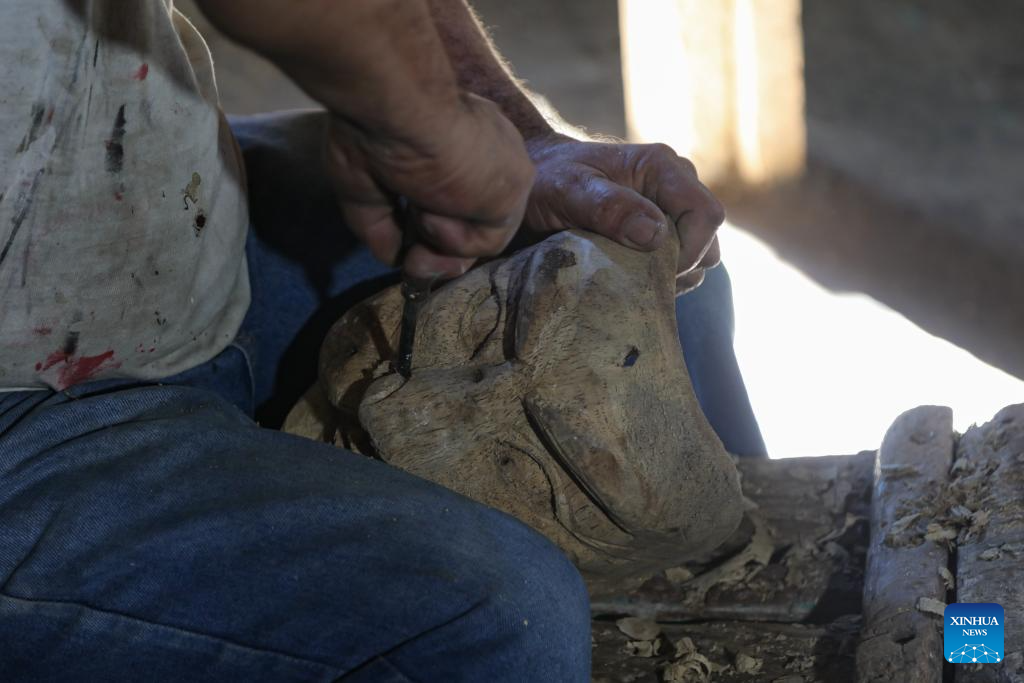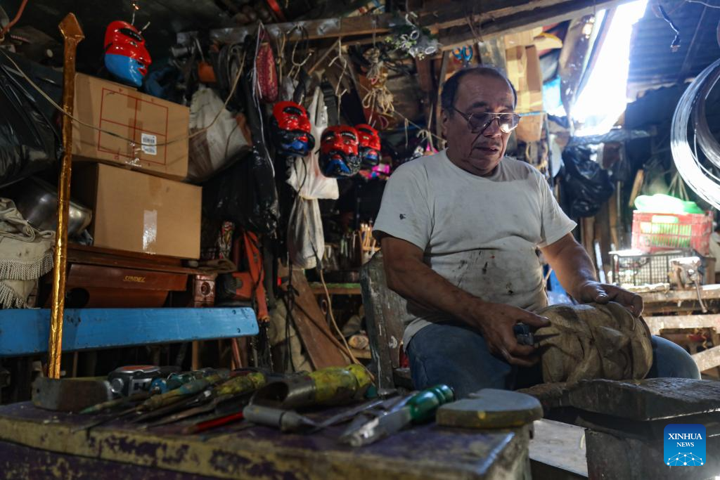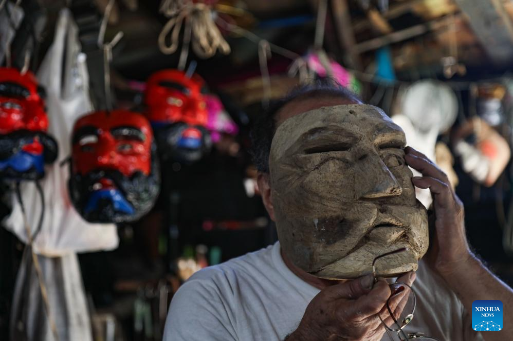 "Desde hace 44 años, prácticamente me dedico a enseñar las danzas tradicionales de mi cantón San Antonio Abad y a ser tallador de máscaras en madera", dijo Celio a Xinhua, sentado en su taller y rodeado de rostros de madera que parecen observar la historia del país desde distintos tiempos y geografías.