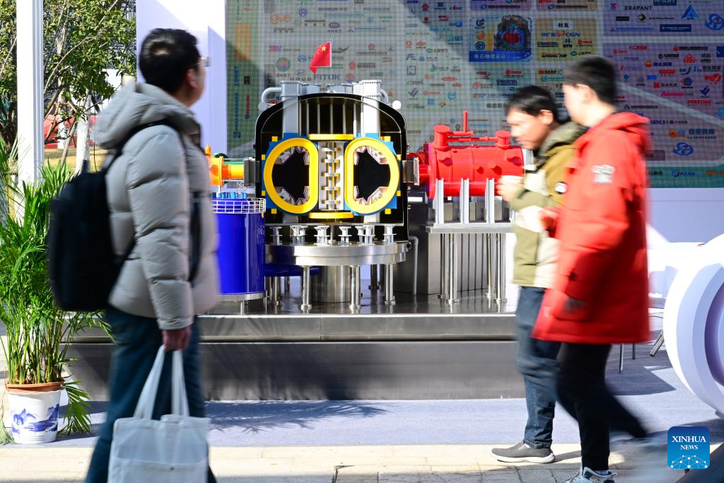 Personas observan una maqueta del Tokamak Superconductor Avanzado Experimental durante la Conferencia de Tecnología e Industria de Energía de Fusión 2026, en Hefei, en la provincia de Anhui, en el este de China, el 16 de enero de 2026. La conferencia se lleva a cabo aquí del 16 al 17 de enero, con el objetivo construir un ecosistema de innovación e industrial colaborativo y progresista para la energía de fusión nuclear. (Xinhua/Zhou Mu)