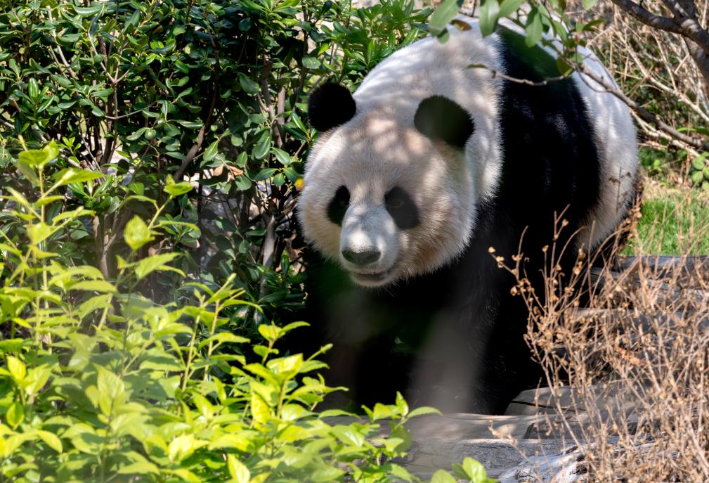 El panda gigante Rongyao deambula por un área exterior del Panda World, en Fuzhou, en la provincia de Fujian, en el sureste de China, el 17 de enero de 2026. Cinco pandas gigantes, procedentes de Chengdu, se reunieron con el público en el reabierto Panda World de Fuzhou el sábado, tras un periodo de adaptación de 20 días. (Xinhua/Wei Peiquan)