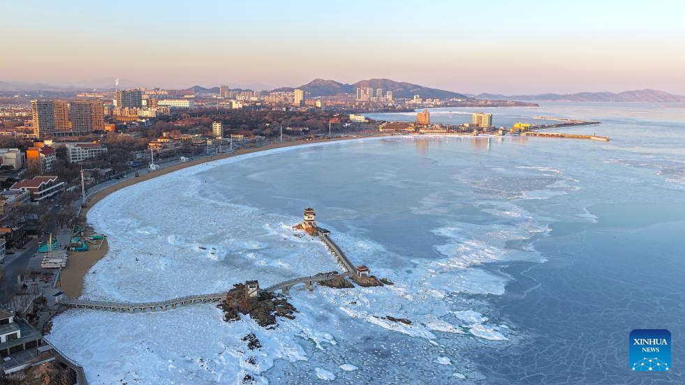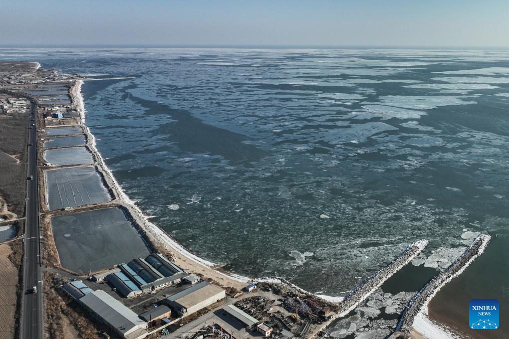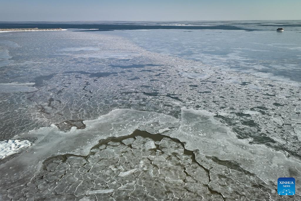 HULUDAO, 21 enero, 2026 (Xinhua) -- Imagen tomada con un dron el 21 de enero de 2026 de una vista sobre el hielo marino, en Xingcheng de la ciudad de Huludao, en la provincia de Liaoning, en el noreste de China. (Xinhua/Tian Jia)